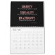 January: "Light! Light! Everything comes from it, and everything returns to it." (5.I.v) February: "Nothing is more dangerous than discontinued labour; it is habit lost." (4.II.i) March: "Liberty: the sovereignty of myself over myself; Equality: the concession that each makes to all; Fraternity: the protection of all over each." (Adapted from 5.I.v) April: "Equality is not a society of big blades of grass and little oaks." (Adapted from 5.I.v) May: "Hope: the word that the finger of God has written on the brow of everyone." (Adapted from 1.II.vii) June: "There are people who observe the rules of honour as we observe the stars, from far off." (5.I.xxi) July: "Infallibility is not infallible." (5.IV.i) August: "Brothers, whoever dies here dies in the radiance of the future, and we are entering a grave illuminated by the dawn." (5.I.v) September: "To subdue matter is the first step; to realise the ideal is the second." (5.I.v) October: "To write the poem of the human conscience, if only of one man, even the most insignificant man, woud be to swallow up all epics in a superior and definitive epic." (1.VII.iii) November: "Man has one tyrant, Ignorance." (1.I.x) December: "There is scarcely anything else in the world but to love one another." (5.IX.v)