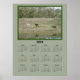 Three alpacas romp on a hill next to a body of water. One is white, another red, the third is black. Oak trees are in the background and the three animals are reflected in the water at bottom of image. Image is framed in dark green. Bottom shows 12-month calendar for 2024. Background colour (defaults to grey-green).