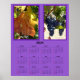 Purple grapes hanging amid green and orange speckled leaves on the right. On left is a close up image of a single orange and yellow leaf on the vine. 12 months calendar at bottom. Pictures are framed with in dark purple. Background is a lighter purple.