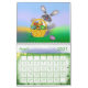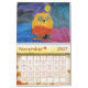 Funny cute wall calendar for kids with symbolic close-up digital illustration for each month pointing to Holidays.