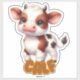 The tail, with a fluffy black tip, is playfully curled, and its sturdy little legs are capped with shiny black hooves. Below the calf, the word "CALF" is written in a bold, bubbly font in a warm orange colour, adding a playful and cheerful vibe to the design. A white border surrounds the sticker, making it stand out on any background, whether applied to walls, furniture, or other surfaces.