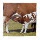 Brown cow ( Mammal) and calf suckling in a prairie, department of the Sarthe in France