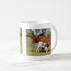 Brown cow ( Mammal) and calf suckling in a prairie, department of the Sarthe in France