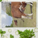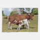 Brown cow ( Mammal) and calf suckling in a prairie, department of the Sarthe in France