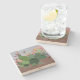 The coasters are gorgeous, a quality feel and heavy weight. They look like a precious archeological find. A rustic stone juxtaposed with a modern floral black and white print. I like the way the print goes slightly imperfect on the cut stone edges giving them a kind-of natural beauty.