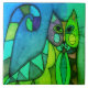My funky abstract digital painting of a calico cat printed on ceramic tile