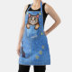 This fun novelty apron includes a faux (printed) denim / blue jean look and includes a cartoon calico kitty cat that appears as if it's sitting inside a pocket! The design also includes "patches" (printed) that resemble the silhouettes of a cat chasing a bird and three paw prints. Use the easy template to add your name or your cat's name to the design (or simply delete the sample name "Tabitha" to order without a name). These cute aprons make the perfect gift for any cat owner! They would also be fun for an animal groomer or vet.