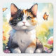 Calico Cat in Spring Garden with Butterflies Square Sticker