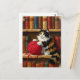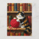 Calico Cat Playing With Yarn On A Bookshelf Postcard