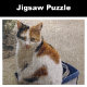 Calico cat sitting in a box in the garden jigsaw puzzle