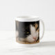 Coffee mug featuring Macy, a young, full blooded Calico cat has climbed under a rug thinking she is hiding, to play. Did you know that only the female Calico's have all 3 colours (brown, black and White)? Male Calico's only have black and white. Looking for more prints or products? Feel free to visit my store: http://www.zazzle.com/timelessmomentsphtgy This photo was taken by Jennifer White with Timeless Moments Photography. All images are copyrighted © Timeless Moments Photography/Jennifer White. All rights reserved.