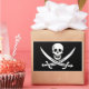 Based on the Calico Jack pirate flag. If you'd like a different background colour, choose the "customise it" feature and delete the black background image. You can set the background colour to pink or purple or your favourite colour. Add your own "Talk Like a Pirate" message. Check out the "Gatekeeper" font in the system ... it is sufficiently pirate-ish.
