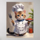 Sweet calico kitten in a chef hat, holding a Fork and ready to bake. A delightful design for cat lovers, bakers, and foodies.