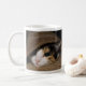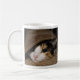 Coffee mug featuring Macy, a young, full blooded Calico cat has climbed under a rug thinking she is hiding, to play. Looking for more prints or products? Feel free to visit my store: http://www.zazzle.com/timelessmomentsphtgy