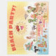 A spectacular cartoon of Southern California – Los Angeles, Anaheim, Long Beach, San Diego. This charming scene has it all – a surfer hangs ten as a mermaid lounges on a rock, a T-Rex roars a challenge, a killer whale leaps out of the water, a muscular beach couple both flex to impress while local creatures enjoy the warmth of the sun, shining high above it all…