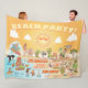 Bright and charming cartoon blanket offers a whimsical view of Southern California - cute characters enjoy the warm California sun showcasing Los Angeles, San Diego, Riverside, Palm Springs, Anaheim and Long Beach, Anza Borrego and Joshua Tree parks as well as the border cities of Tijuana, Tecate and Mexicali.