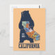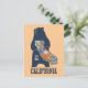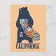 California Bear Postcard, vintage Golden State Motto Travel Map design.