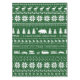 Cute California Christmas Tablecloth. A fun table covering for your holiday celebration. This festive green and white Christmas pattern features the California state bear, pine trees, a dog riding a skateboard and cars with a Christmas tree and a surfboard. Text: “A California Christmas, love, joy, peace, sunshine.”