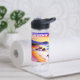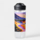 Artistic and colourful water bottle features digital watercolor painting of the California Coastline as seen from Pacific Coast Highway. Design created using AI software. Add name or monogram for a personalised feel.