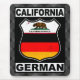 California German design, in the style of a cool American road route sign. The text California German is along the top and bottom, with the flag of the State of California and the flag of Germany inside the route sign. Great for Californians of German descent, and for ex-pats in the Republic of California!