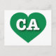 This postcard features a vibrant green heart containing the bold, white, upper case letters CA, the official abbreviation for California, the golden state. The reverse side of the postcard is blank, awaiting your handwritten sentiments or customised text.