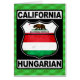 California Hungarian design, in the style of a cool American road route sign. The text California Hungarian is along the top and bottom, with the flag of the State of California and the flag of Hungary inside the route sign. Great for Californians of Hungarian descent, and for ex-pats in the Republic of California!