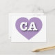 This postcard features a cool lavender heart containing the bold, white, upper case letters CA, the official abbreviation for California, the golden state. The reverse side of the postcard is blank, awaiting your handwritten sentiments or customised text.