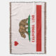 It's the classic California Love throw blanket! Featuring the Cali State Flag with a red heart in place of the star, and a very light pink background. Grab this vintage California blanket and show your love for Cali!