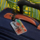 I was happy with the acrylic tag but it came with a thin leather strap to attach the tag to luggage (like a cat collar). I replaced the strap with a metal ring off of a key ring as the leather strap would come undone or break easily as luggage is sometimes handled without much care by airlines. Printing is great. Colours and positioning of the design I put on the tag were perfect. Very pleased.