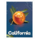 Californian vacation travel poster featuring a sliced orange.