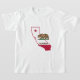 100% cotton so perfect for summer, It is a nicely designed t-shirt, the fabric is soft and the seams finished well, the body of the t shirt has no side seams. I bought a medium size for my two grandsons, aged 9 and 8 it will be slightly big on them but I would rather that than too small