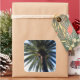 Photo of looking up into the fronds of palm tree with blue sky behind. Palm trees line the park at La Jolla Cove which is a park in downtown LJ that includes a grass park and access to the ocean. Colour photo of ocean beach seaside taken in La Jolla, California. La Jolla is a suburb of San Diego near the US and Mexico border.