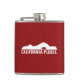 The flask itself is fine. It’s a cheap flask, obviously bought in bulk, however am prepared to overlook that. Given that it is a personalized item, I would have liked to have seen gift boxing instead of the generic packaging. Terrible printing, and/or quality. It’s a cheap, tacky vinyl. It is not cut straight and is also applied in a way that it is overhanging the bottom, causing the glue to catch on items and it will eventually roll and tear, damaging the wrap.