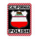California Polish design, in the style of a cool American road route sign. The text California Polish is along the top and bottom, with the flag of the State of California and the flag of Poland inside the route sign. Great for Californians of Polish descent, and for ex-pats in the Republic of California!