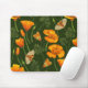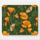 California poppies and moths on dark green mouse pad
