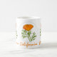 California in orange text, A golden poppy in a circle. It is a simple but dramatic photo of a Poppy one of several species that grow wild in California (genus eschscholzia). This would be great souvenir of a visit to California, the Golden State.