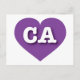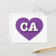 This postcard features a vibrant purple heart containing the bold, white, upper case letters CA, the official abbreviation for the state of California, the golden state. The reverse side of the postcard is blank, awaiting your handwritten sentiments or customised text. Choose font style, size, and colour.