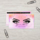 California Rainbow Trendy drips Lashes script Business Card. Fabulous Makeup Artist Eyelash Lashes design with script calligraphy text, rose gold glitters and eye-catching sleek background Business Card, with woman eyes illustration. Custom this feminine business card design adding your own logo, your name, your profession, choose your own script font, change or delete any element and you'll have an amazing tool for attract clients and grow your business.