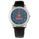 The California state flag design is revisited here on this fine custom gift idea with a larger vibrant red star accent on a stylish hope election red and blue fashion watch.