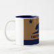 california republic design coffee mug in brown and blue with blue trim, available in different trim options
