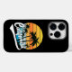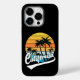California iPhone case with a retro design that features a sunset and palm trees on black background (customisable bg). This design also has California in a handwritten font with a swash tail glyph for that stylish retro look. This iPhone case is just for you if you are from California or you can get as a gift or souvenir for someone.