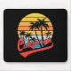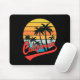 California mouse pad with a retro design that features a sunset and palm trees on black background (customisable bg colour). This design also has California in a handwritten font with a swash tail glyph for that stylish retro look. This Mouse Pad is just for you if you are from California or you can get as a gift or souvenir for someone.