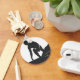 Surfer key-chain featuring graphic art of the Tim Kelly Memorial Statue in Hermosa Beach, California. Black and White graphic surfer design. San Pedro Logo on back.. Customise with your business logo and make it your own, variety of options.