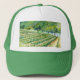 Watercolor painting of the rolling hills full of grapes vines at a California Vineyard.