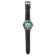 My husband loves the watch, he likes the dial, the graphics, the band, and it keeps perfect time.