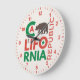 Purchased this online and it got delivered quickly. It was a present for my Dads 70th birthday. He loves clocks so decided to get him one with something written on it. Battery went in and it started working straight away. Dads had no issues with it. Printing was just how it came up online.