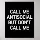 Call Me Antisocial But Don't Call Me, Funny, Joke, Poster