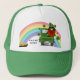 Call Me Lucky Irish Gnome St Patrick's Day product. Funny bearded gnome, travelling in a truck, heading towards a rainbow, and shamrocks in the air. Personalise this template