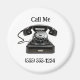 Two lines of customisable text are featured on this old-fashion style telephone button magnet.
