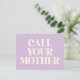 Call Your Mother Funny Mum Quote in Lavender Postcard
